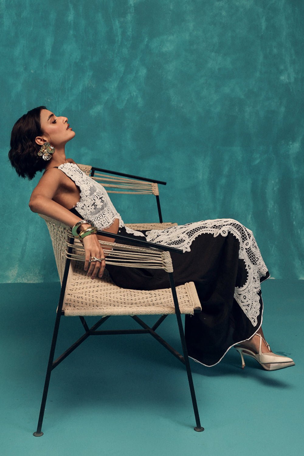 Striking yet sophisticated, this black linen midi dress is designed to make a statement. Featuring subtle waist cutouts that add a modern edge, the dress is adorned with delicate lace detailing and pearl embellishments. The scalloped hem adds a romantic finish, while the back zipper ensures a seamless fit. Perfect for summer evenings or festive celebrations, this dress combines timeless elegance with contemporary charm.