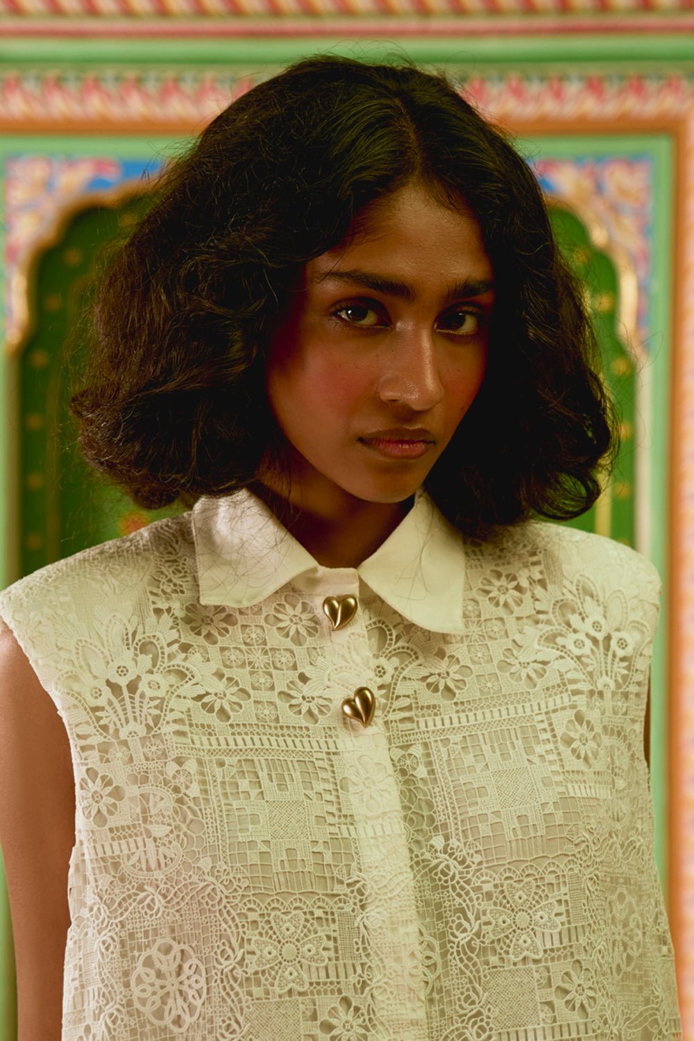 Rachel dress with lace mini shirt dress with shoulder padded sleeves and feather detailing