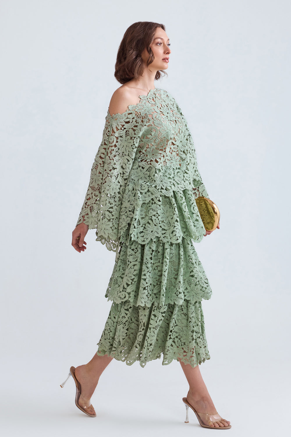 Raisa lace scalloped co-ord set with calloped lace loose-fit raglan top.