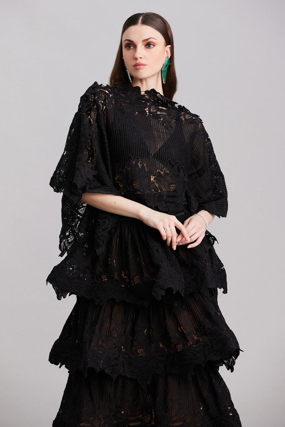 Scallop Black Layered Top & Skirt Set