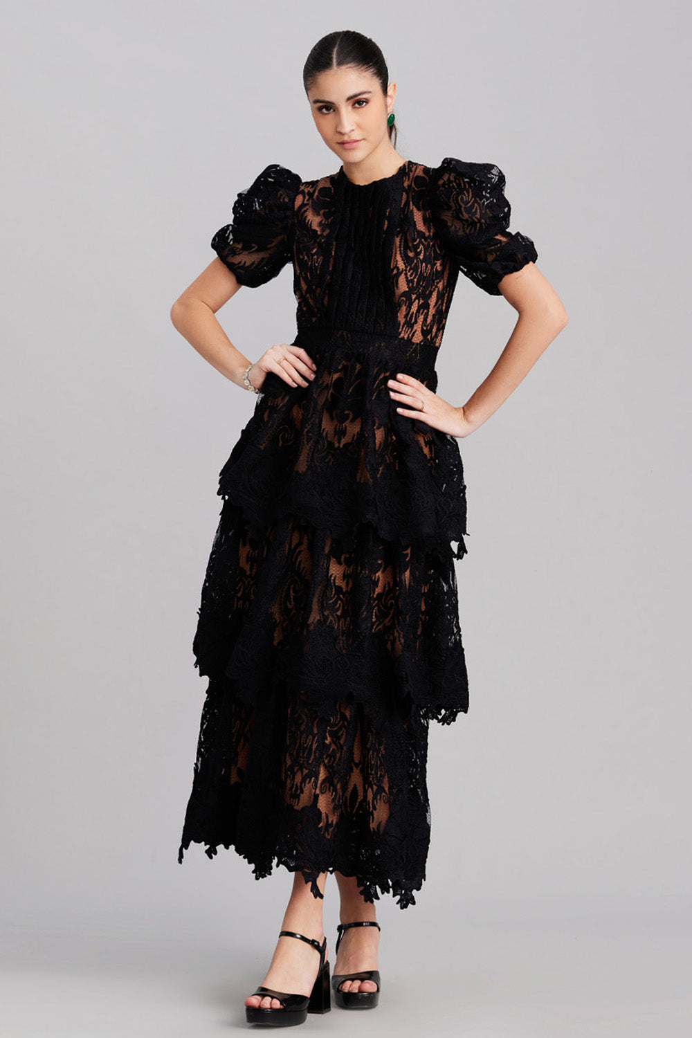 Muse Black Lace Midi Dress