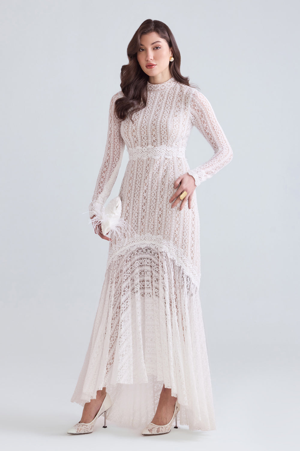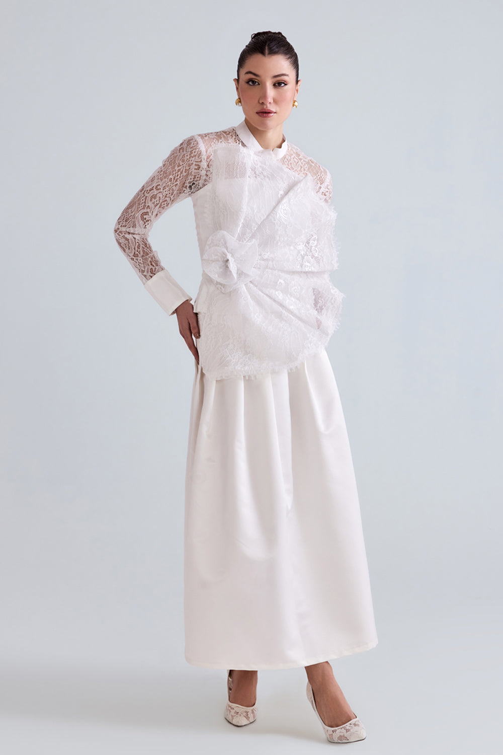 Afra White Lace Shirt, Top and Satin Skirt Set